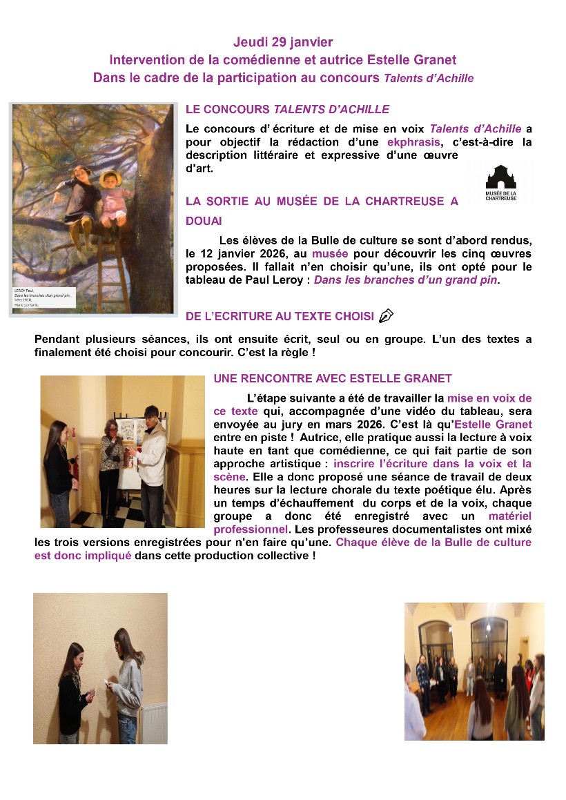 Concours Talents d’Achille - Lycée Jean-Baptiste Corot de DOUAI
