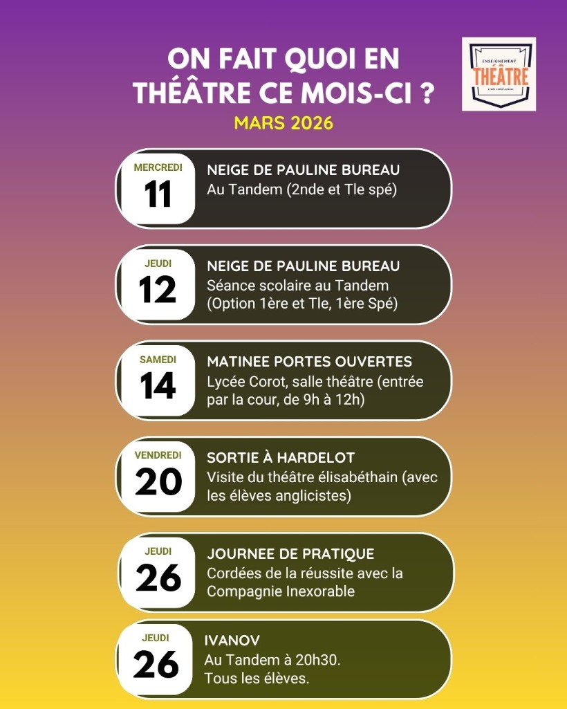 On fait quoi au théâtre ce mois-ci ? - Lycée Jean-Baptiste Corot de DOUAI