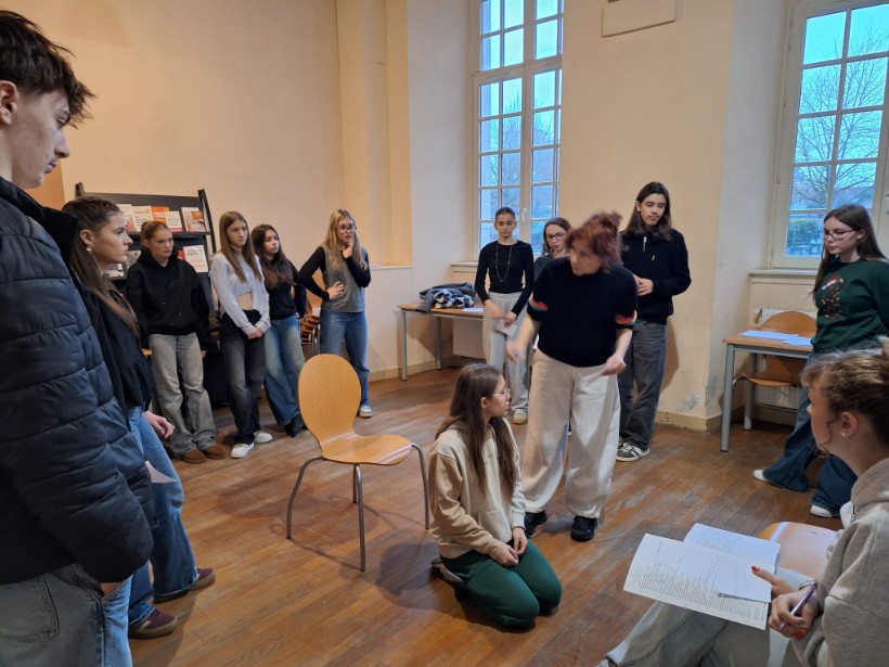 Dans le cadre du projet Lectures musicales à voix haute, mené par trois professeurs — M. Delahaye en danse, M. Garcia en musique et Mme Courdavault en français — la classe de 2de 04, composée de musiciens et de danseurs, a préparé la lecture ce jeudi 18 décembre. Des comédiens professionnels de la compagnie Étrange Été, dirigée par Béatrice Courtois, ont travaillé avec la professeure de français et les élèves au CDI pour une première découverte des poèmes. Les élèves créeront eux-